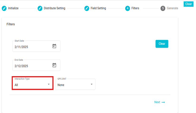 Select the appropriate Interaction Type from the dropdown to generate the Cookie Consent Report based on how users interacted with the cookie banner.