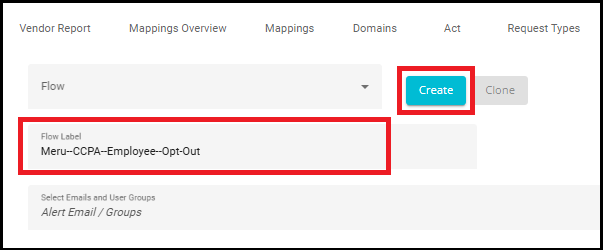 • When setting up a new tenant or creating the flow for the first time, the Create option will appear. From the second time onward, you will have the option to clone existing flows for easier setup and reuse.