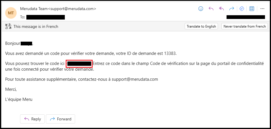 1. Similarly, choose the corresponding Request Verification Email Template (e.g., privacy-portal-request-verification-fr) to send the verification email in the same language.