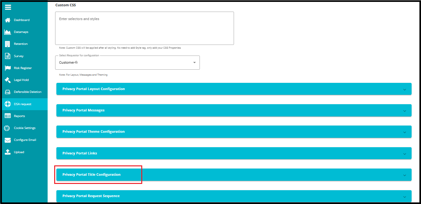 1. Click on "Footer Configuration" under the Privacy Portal Layout Configuration section.